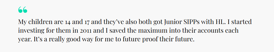 I also open an HL SIPP for my wife because it’s a really good way of me giving her financial security if anything happens to me. It gives me peace of mind knowing that I can invest my money in her. Because I can see everything in one place, both mine, my wife’s, and my children’s accounts, I’ve got a really good broad picture of where we are financially as a household.