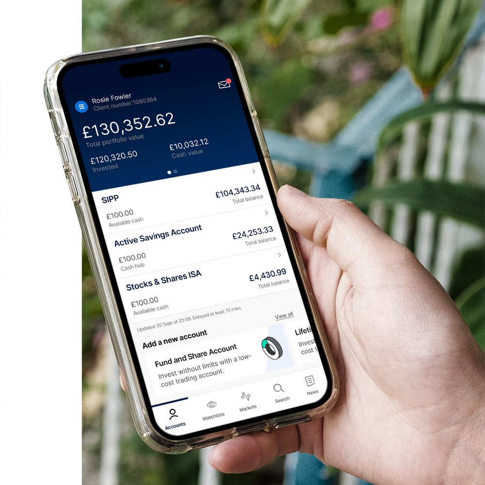 Account charges are ongoing charges based on a percentage of the value of your investments. We are reducing our annual account charges from 0.45% to 0.35% on Stocks and Shares ISA and SIPP accounts. For Fund and Share Accounts, we’re reducing account charges for holding funds, from 0.45% to 0.35%, and introducing a charge of 0.35% to hold shares.