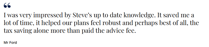 Our financial advisers typically charge 1-2% of the assets advised on (+VAT where applicable, minimum charges apply). This is a one-off charge which will depend on the complexity of your situation, the time needed to understand your goals, and to provide personal recommendations.