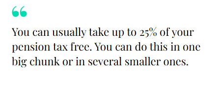 You can usually take up to 25% of your pension tax free. You can do this in one big chunk or in several smaller ones. But either way, you should always consider the fact that money is no longer invested and therefore not growing or generating dividends for income. In Mrs Vallis’ case, we looked at her retirement income requirements, did the sums and established she could release some cash and still live comfortably on the remaining pension.