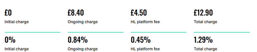 The HL platform fee is our charge for looking after your investments which won't be over 0.45% per year. Both of these charges will be payable if you want to hold the fund with HL, amounting to a maximum of just 1.32% in total per year. The above example assumes no growth.