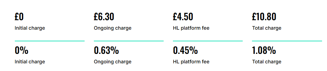 The ongoing charge is taken directly from the fund and will be taken from the income it produces rather than the capital. This covers the management of the fund and all expenses other than transactional fees which are charged on top of this, these costs are incurred by all funds when bonds are bought or sold and are also reflected in the fund’s price. The HL platform fee is our charge for looking after your investments which won't be over 0.45% per year. Both of these charges will be payable if you want to hold the fund with HL. The above example assumes no growth.