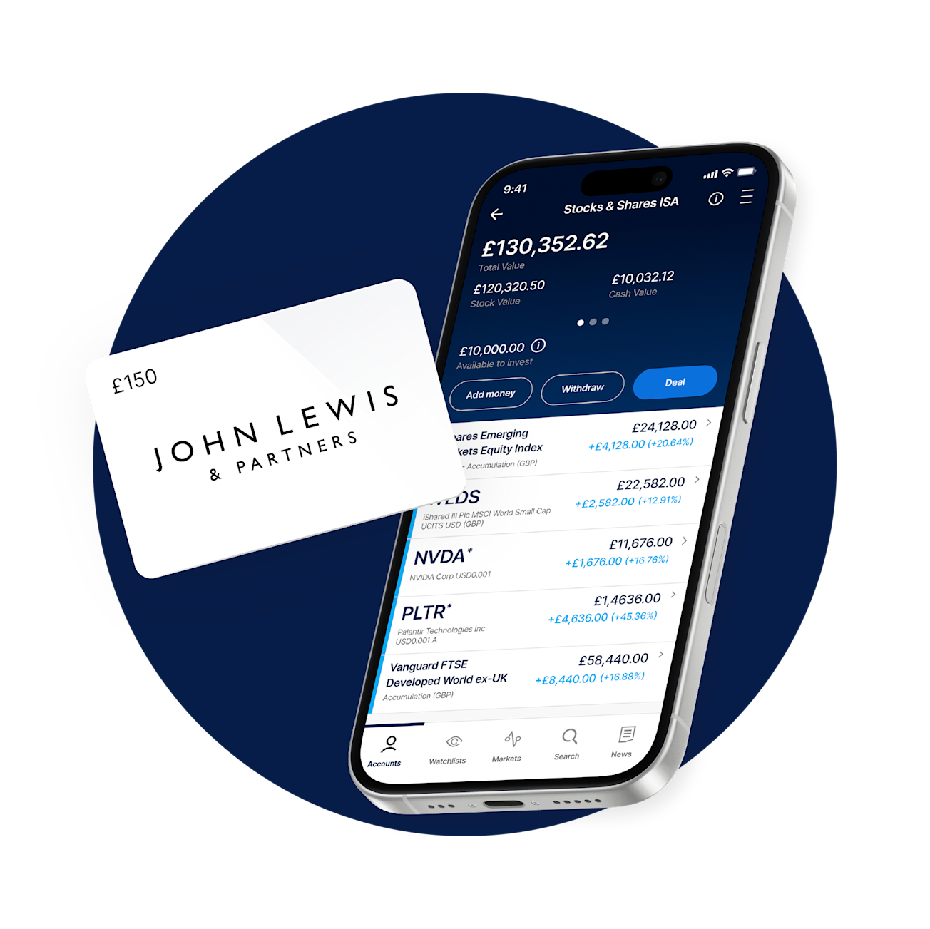 Pocket a £150 John Lewis voucher. Add £10,000 or more by 10 December and you’ll get a £150 e-voucher on us. We’ll email your voucher by 14 March 2026. If you withdraw money from your ISA before 31 January 2026, you won’t receive the voucher if this takes your account balance below £10,000. Terms apply.